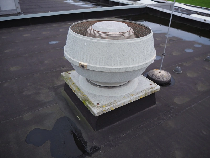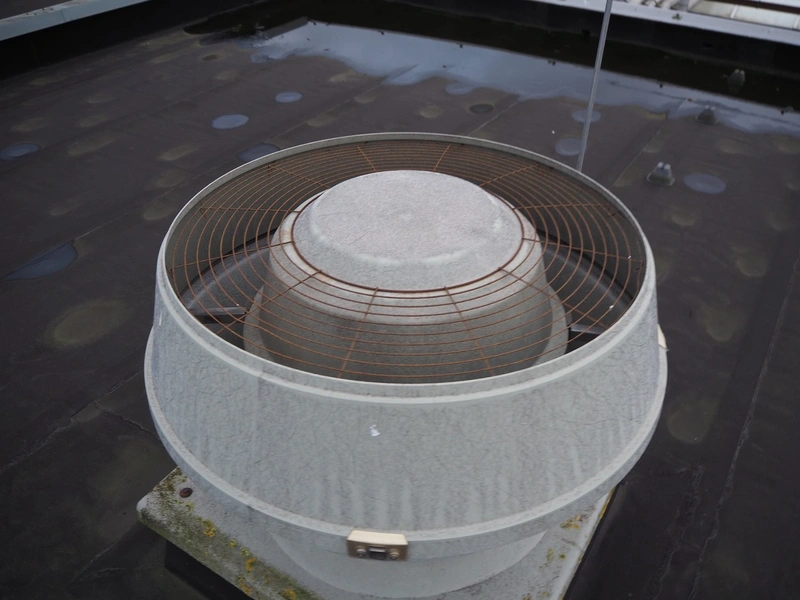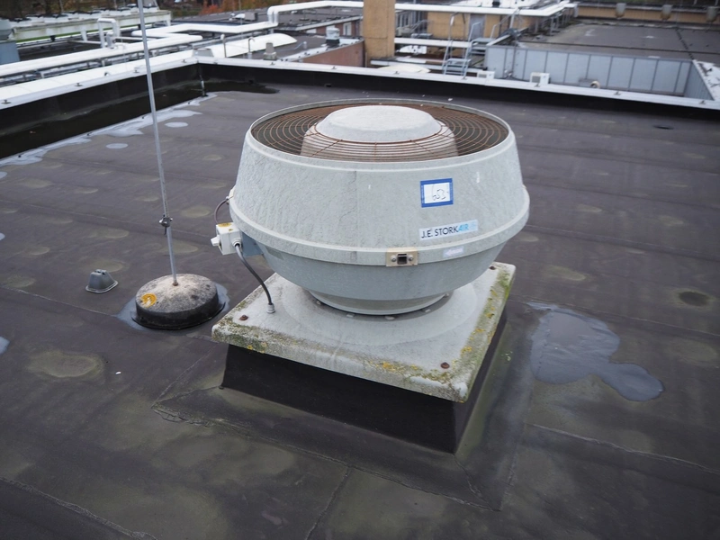 J.E. StorkAir rooftop fan, dimensions: 1000 mm x 1000 mm x 800 mm.