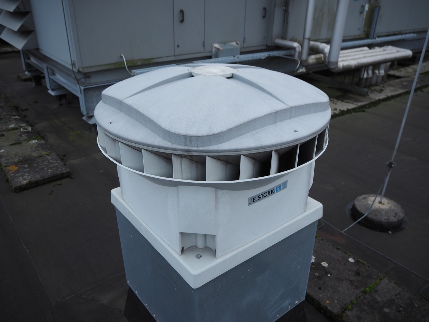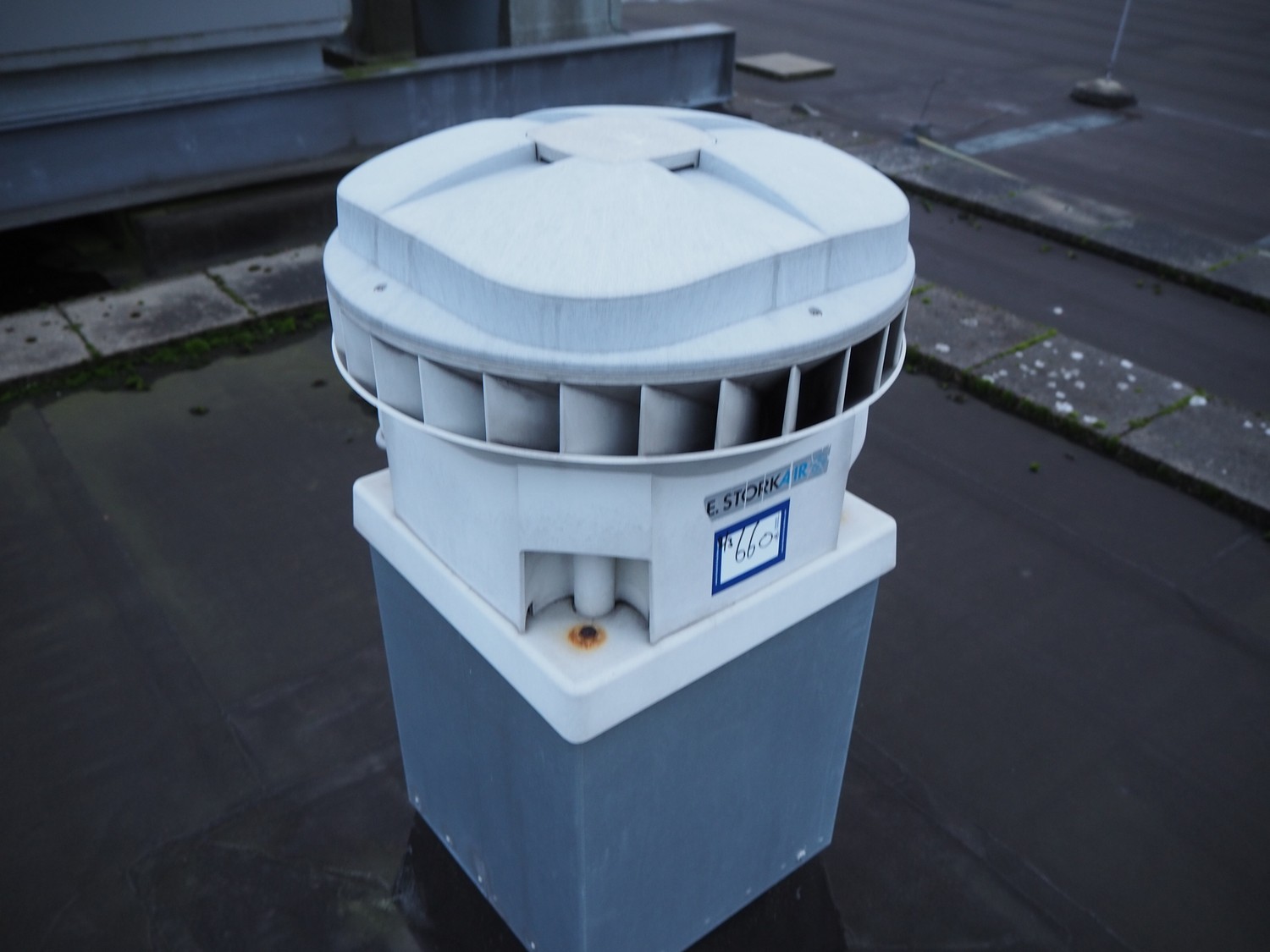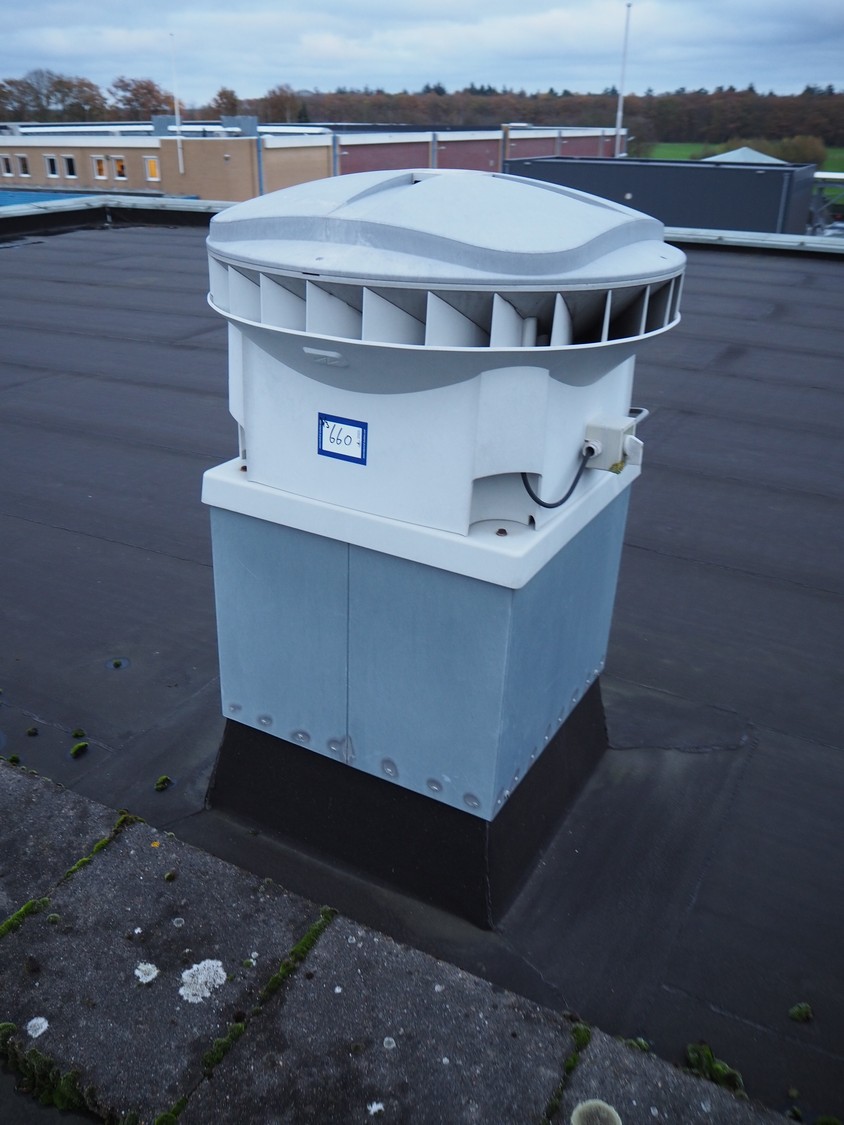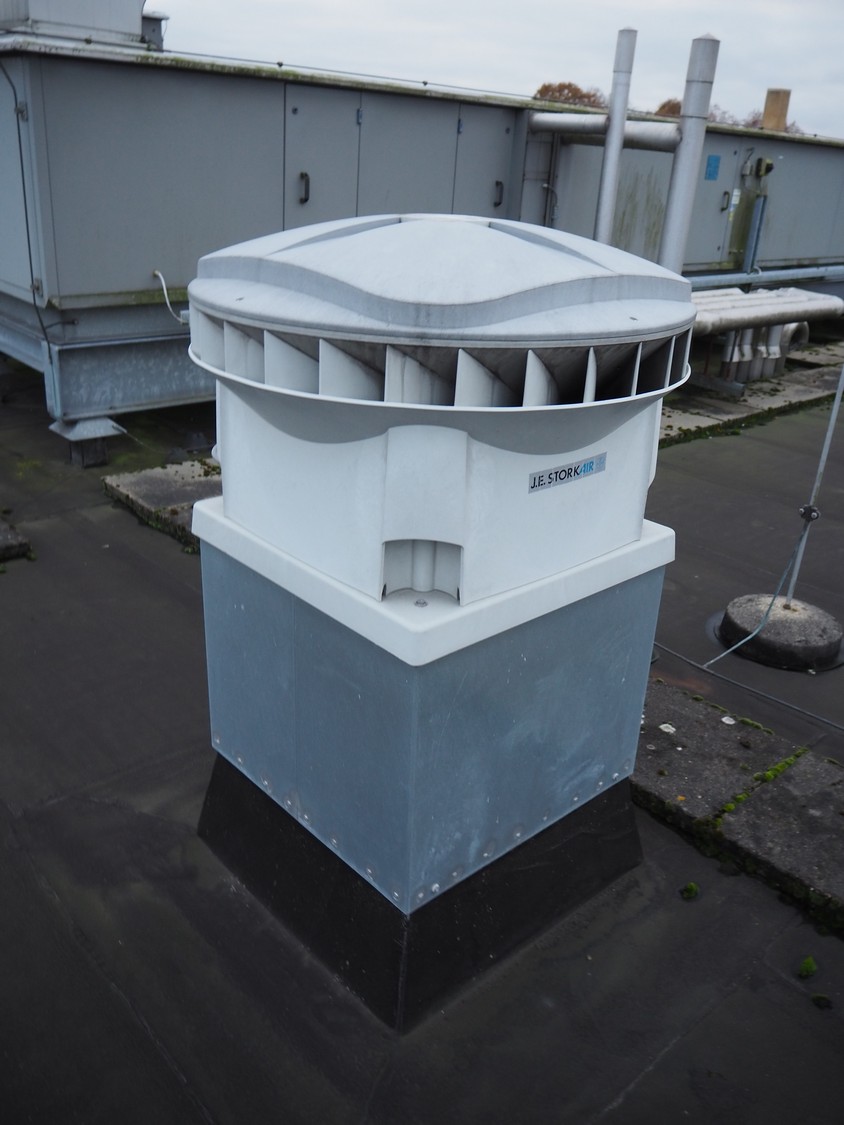 (3x) J.E. StorkAir rooftop fan, dimensions: (2x) 600 mm x 600 mm x 500 mm and (1x) 800 mm x 800 mm x 600 mm.
