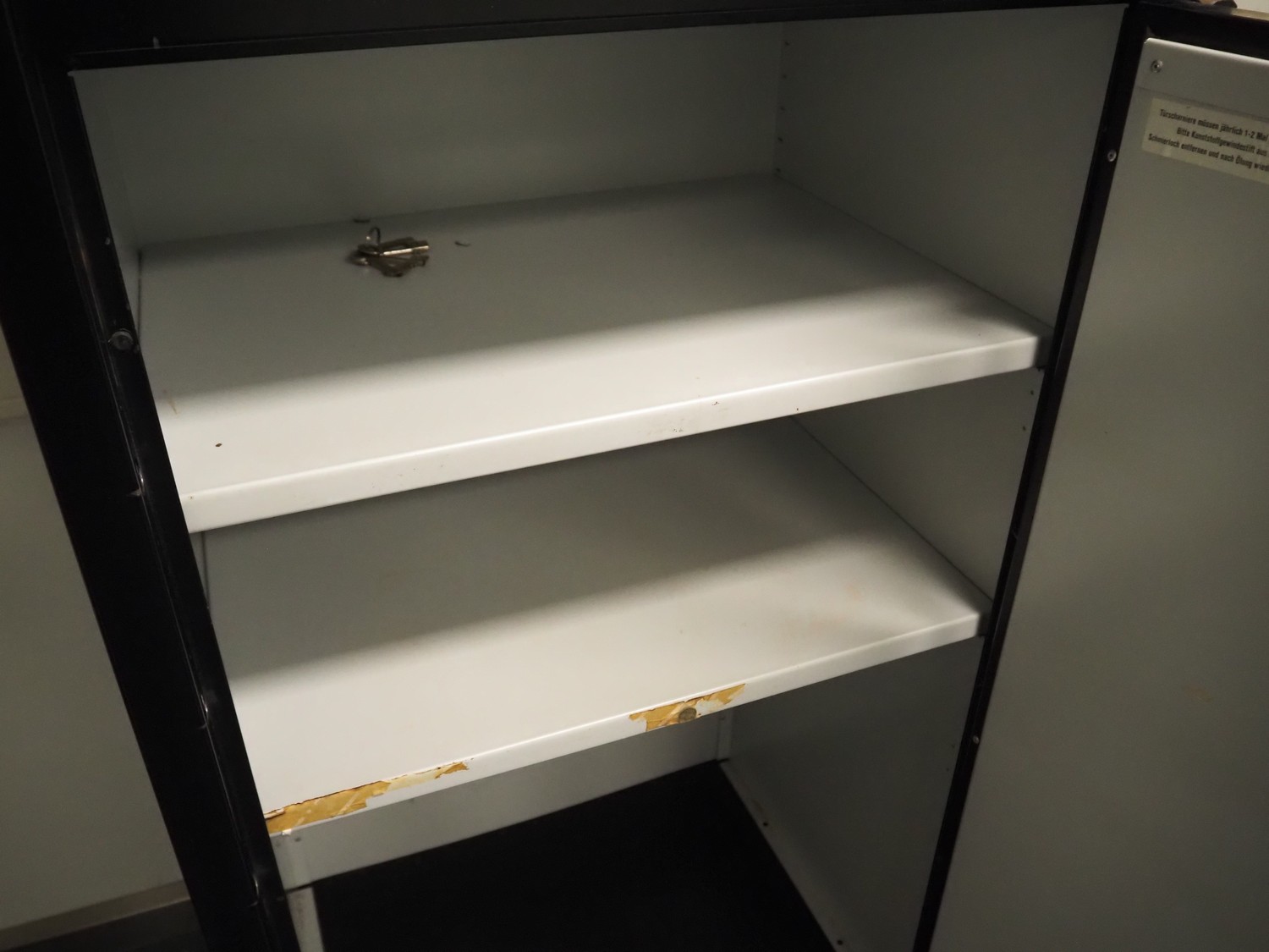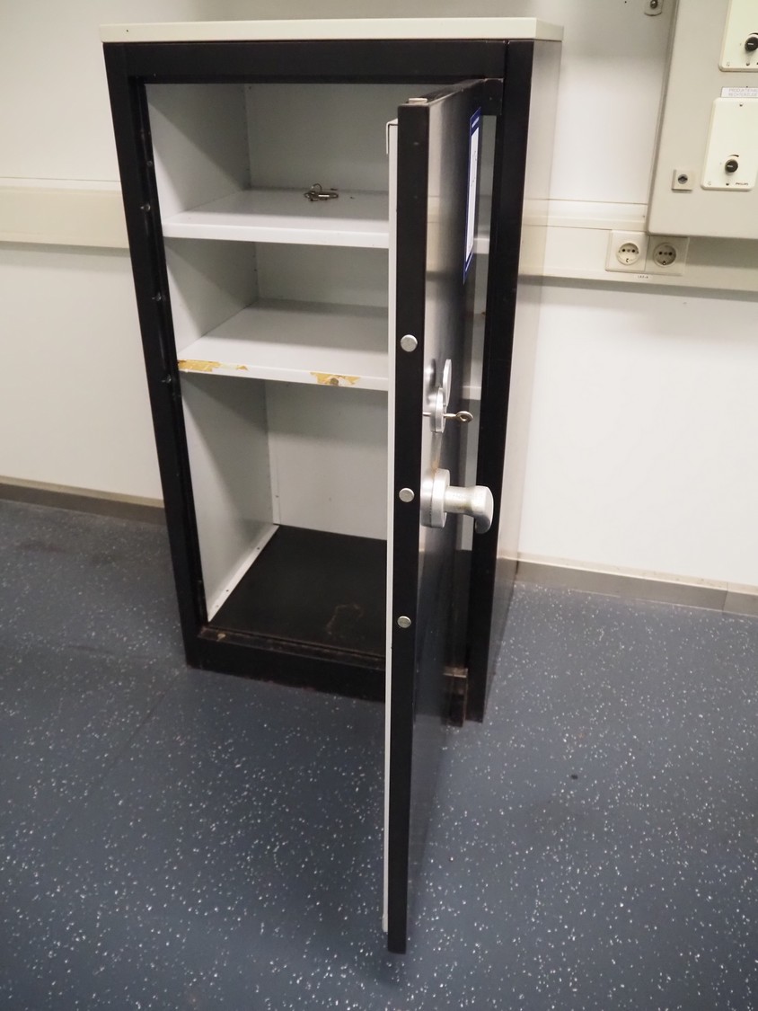 Steel safe, dimensions: 650 mm x 500 mm x 1230 mm.
