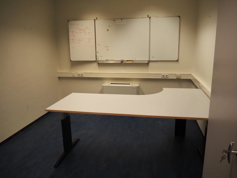 Office inventory, consisting of: table, dimensions: 1100 mm x 500 mm x 680 mm, desk, dimensions: 2000 mm x 1300 mm x 800 mm, Sistec steel fire-resistant filing cabinet, dimensions: 1260 mm x 550 mm x 1950 mm, white board, dimensions: 2400 mm x 960 mm x 20 mm, steel cabinet, dimensions: 1000 mm x 450 mm x 1950 mm.