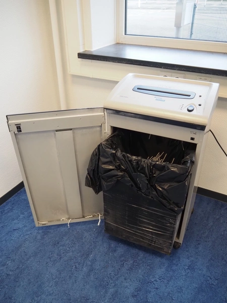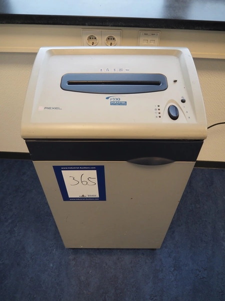 Office inventory, display, floor dimensions: 400 mm x 400 mm, total dimensions: 435 mm x 435 mm x 1755, Rexel paper shredder, model: P330 office shredder, 230 V, 50 Hz, 3 A, dimensions: 470 mm x 370 mm x 880 mm.