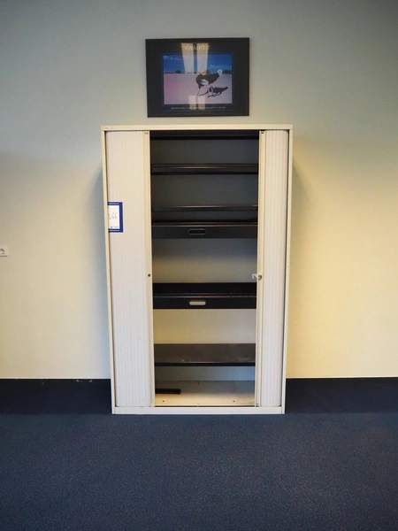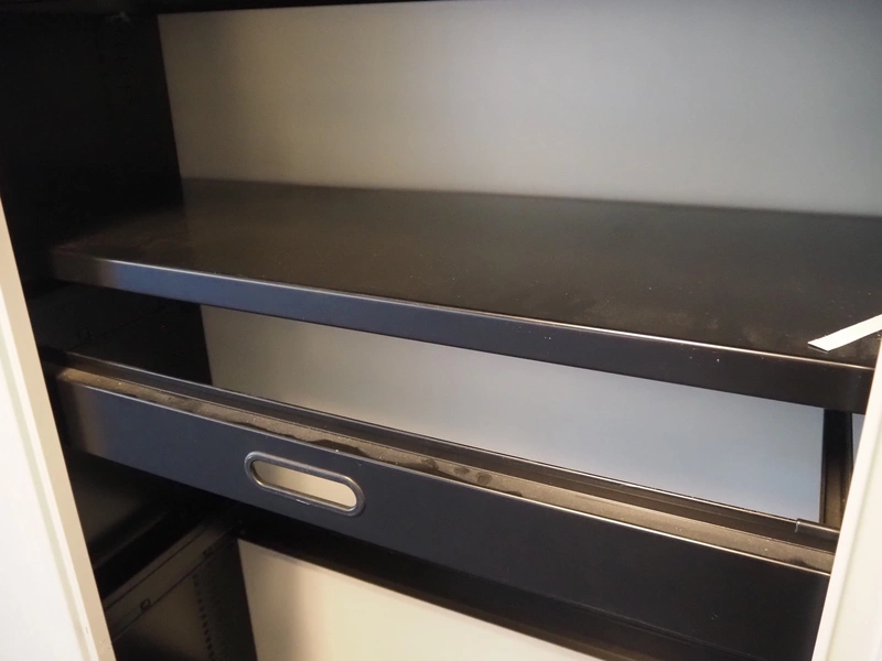 (1x) Sistec steel fire-resistant filing cabinet, dimensions: 1260 mm x 600 mm x 1950 mm, (1x) steel cabinet with sliding doors, dimensions: 120 mm x 470 mm x 1950 mm.