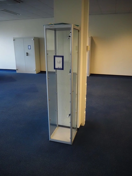 Glass display, floor dimensions: 400 mm x 400 mm, total dimensions: 435 mm x 435 mm x 1755.