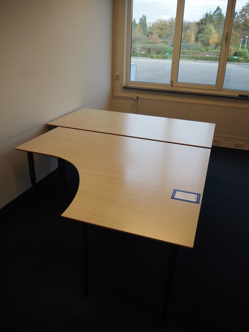 6 desks and 1 cabinet, dimensions cabinet: 1500 mm x 500 mm x 1950 mm, dimensions desks: (2x) 1000 mm x 2000 mm x 760 mm, (1x) 1800 mm x 1600 mm x 760 mm, (1x) 1700 mm x 1200 mm x 760 mm, (1x) 1800 mm x 800 mm x 740 mm, (1x) 2400 mm x 1800 mm x 750 mm.