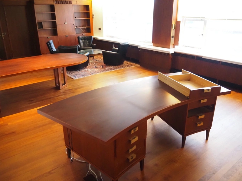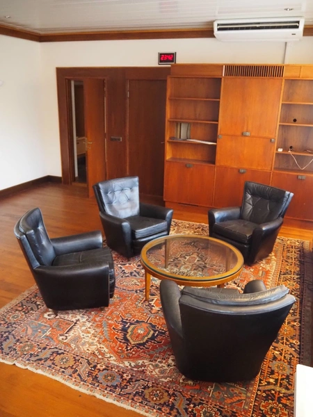 Office inventory consisting of: 3 desks, 4 chairs, 1 table, 2 cabinets.