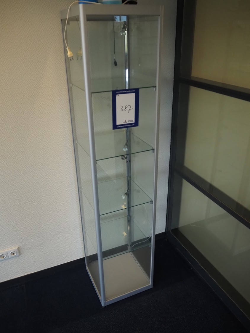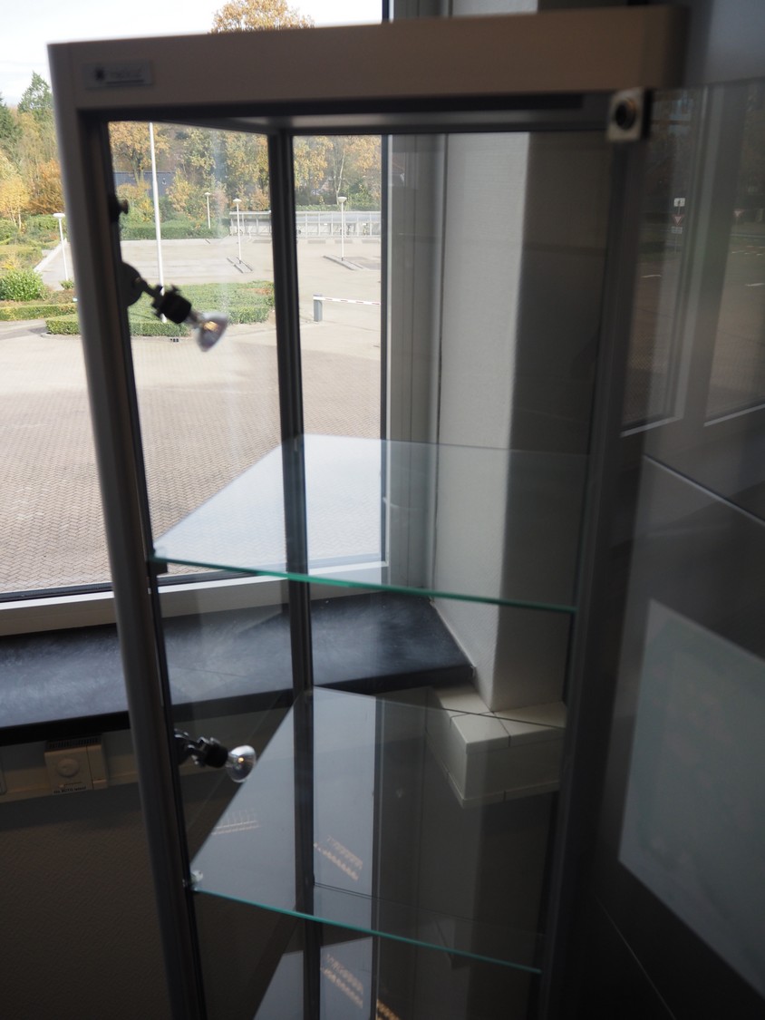 2 Glass displays, floor dimensions: 400 mm x 400 mm, (2x) total dimensions: 435 mm x 435 mm x 1755.