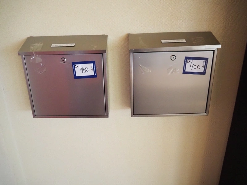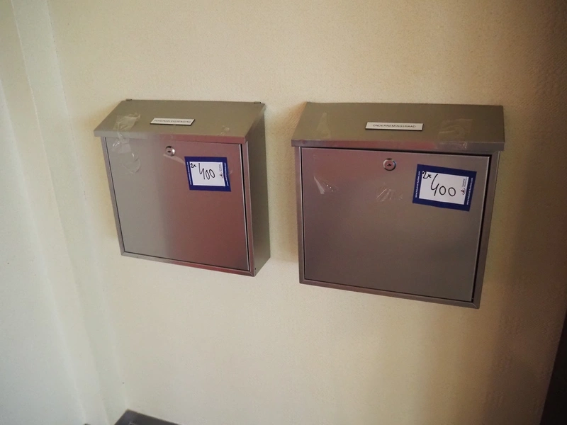 2 s/s letter boxes, dimensions: (2x) 370 mm x 130 mm x 370 mm.