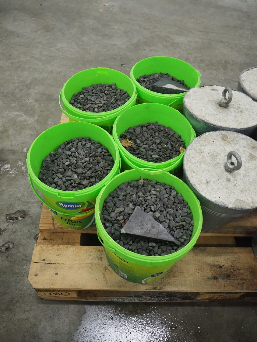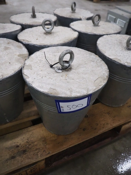 8 buckets filled with concrete, dimensions: (8x) Ø 265 mm x 280 mm.