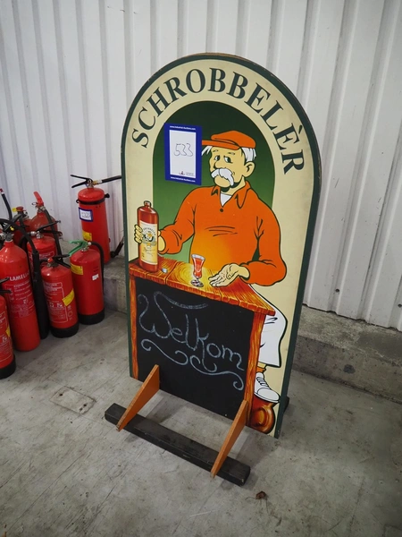 Schrobbelér advertisement board, dimensions: 740 mm x 600 mm x 440 mm.
