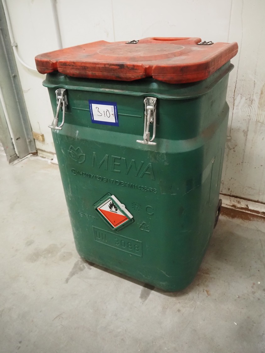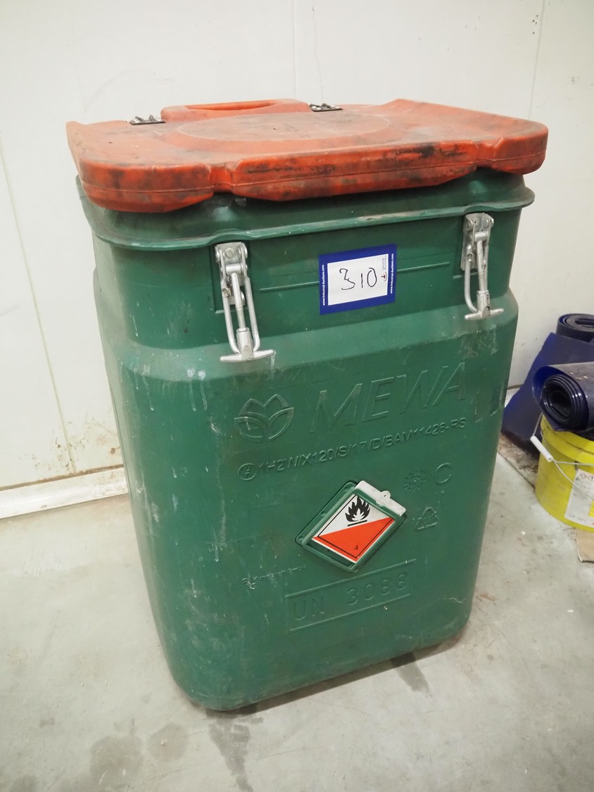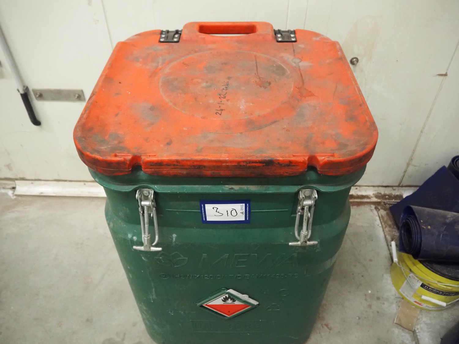 MEWA plastic container, dimensions: 580 mm x 580 mm x 900 mm.