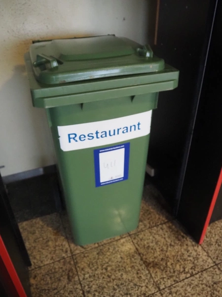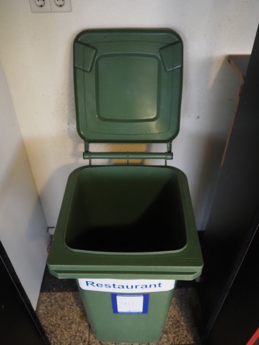 Plastic waste container, capacity: 120 litres, dimensions: 480 mm x 560 mm x 900 mm.