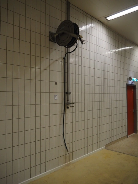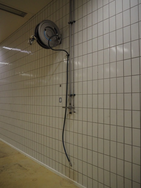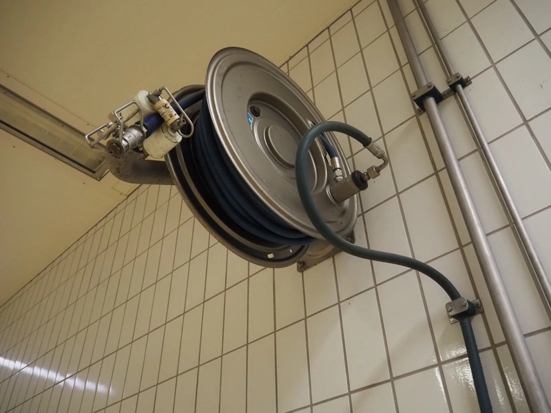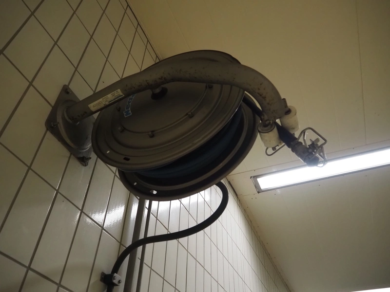 Nederman s/s hose reel, dimensions: 700 mm x 350 mm x 700 mm.