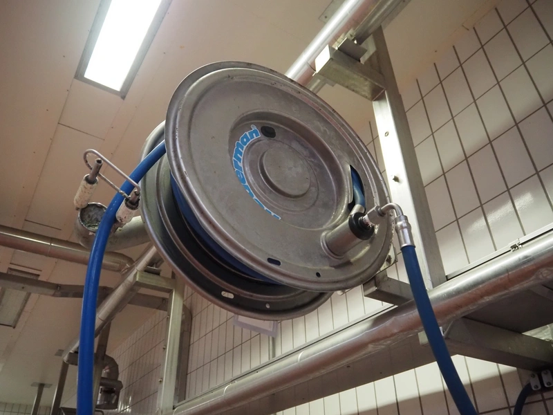 Nederman s/s hose reel, dimensions: 700 mm x 350 mm x 700 mm.
