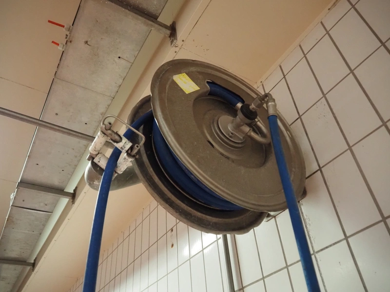 Nederman s/s hose reel, dimensions: 700 mm x 350 mm x 700 mm.