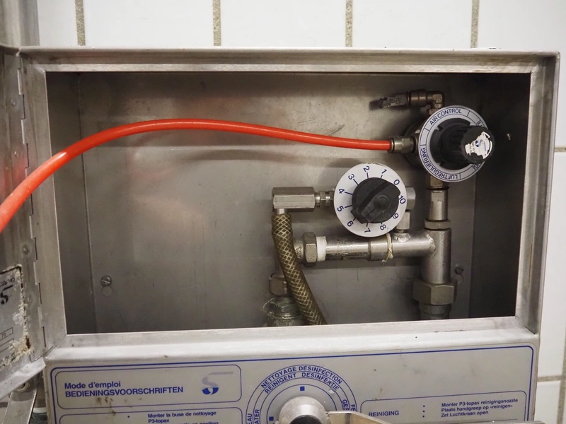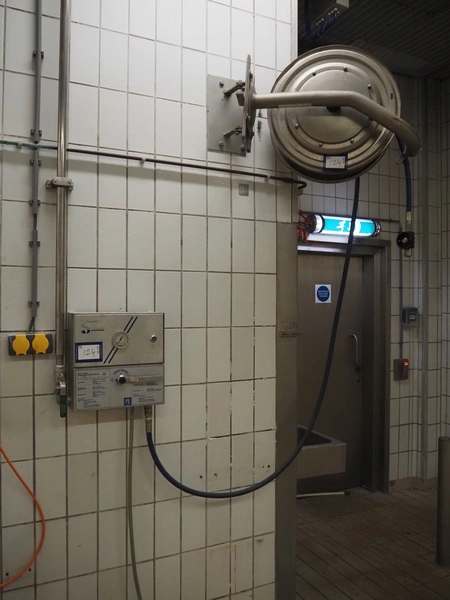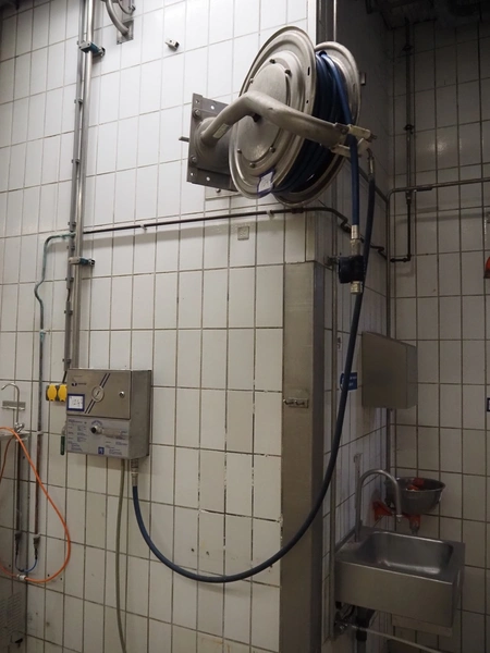 Nederman s/s hose reel, dimensions: 700 mm x 350 mm x 700 mm. Including Scanio Flow-Equipment A/S mixing station for foam, type: S1000.