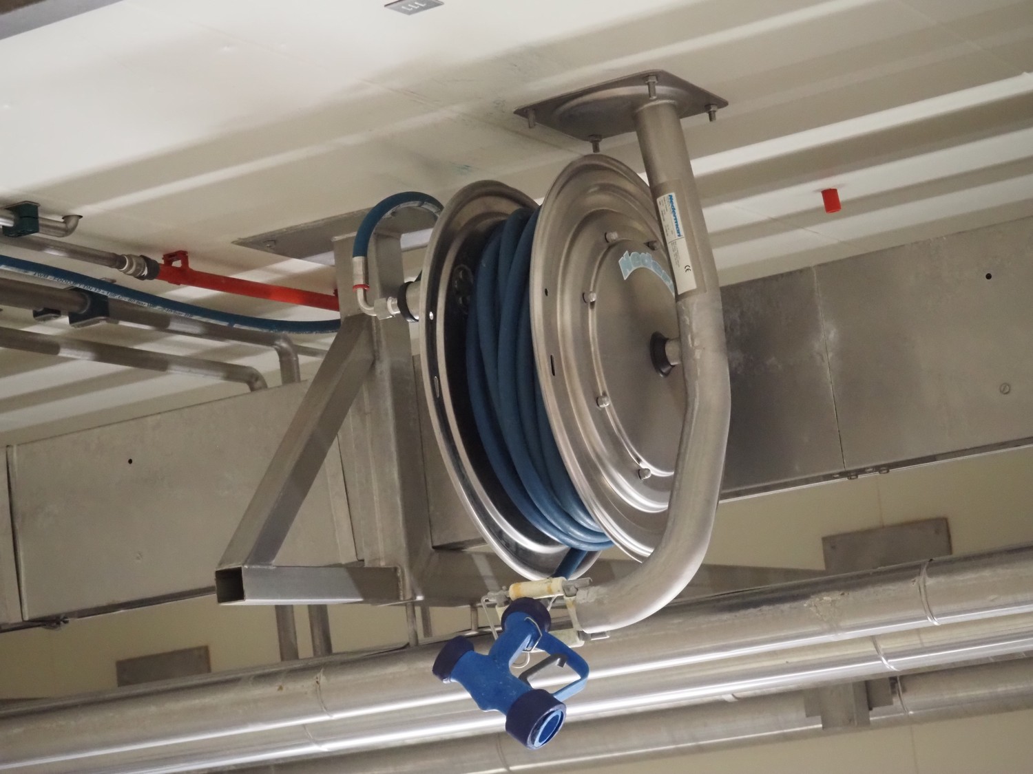 Nederman s/s hose reel, year of construction: 2001, bore: Ø 12.5 mm (1/2"), maximum pressure: 10 Mpa, maximum length: 25 meter, dimensions hose reel: 700 mm x 350 mm x 700 mm.