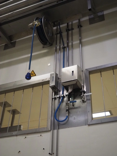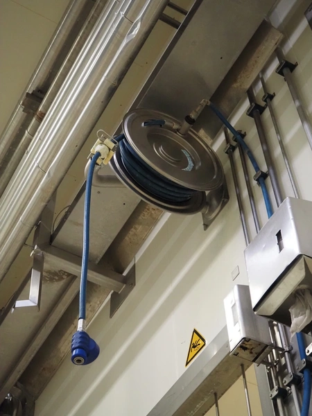 Nederman s/s hose reel, dimensions: 700 mm x 350 mm x 700 mm.