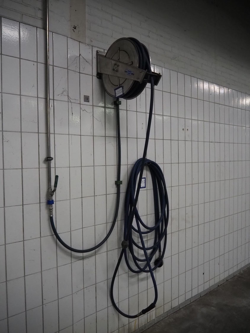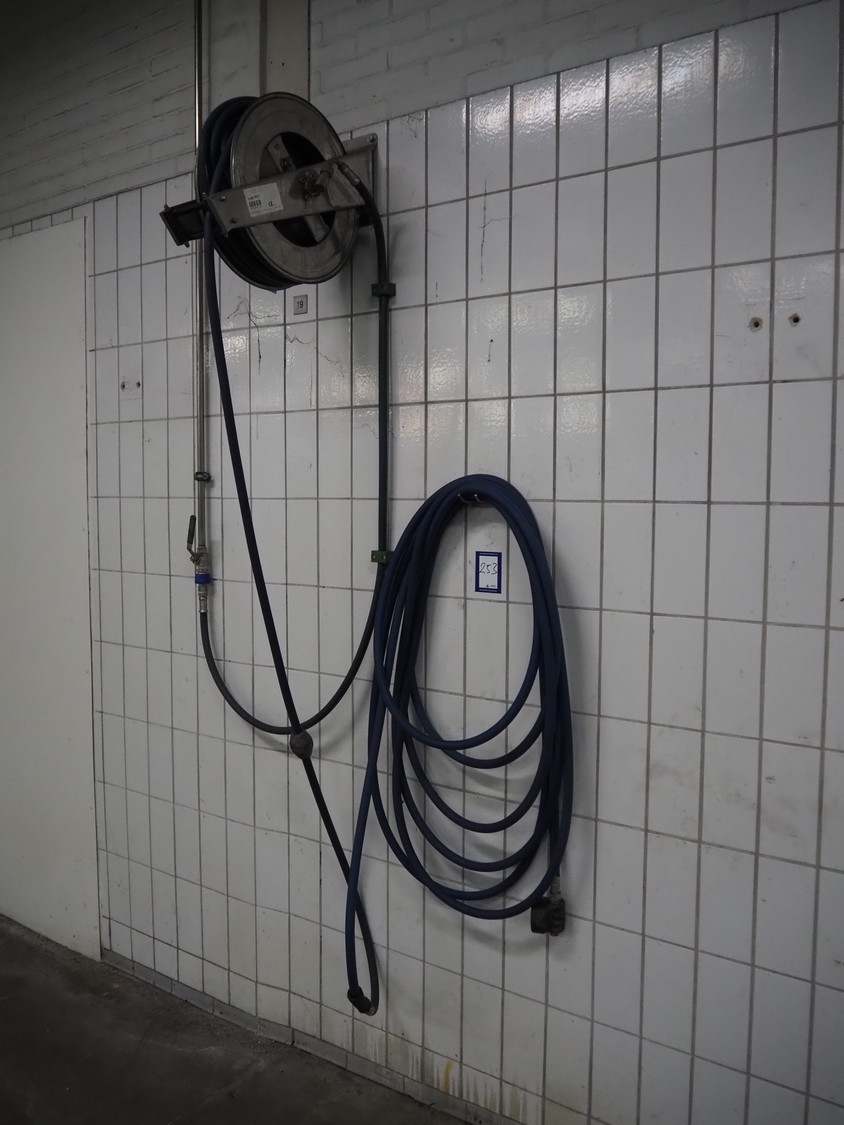 Flexbimec s/s hose reel with plastic hose, dimensions hose reel: 550 mm x 220 mm x 500 mm.