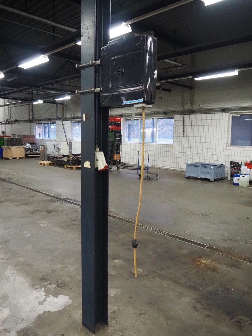 Nederman s/s hose reel, serial number: 886, bore: Ø 12.5 mm (1/2"), maximum pressure: 10 Mpa, maximum length: 25 meter, dimensions hose reel: 700 mm x 350 mm x 700 mm.