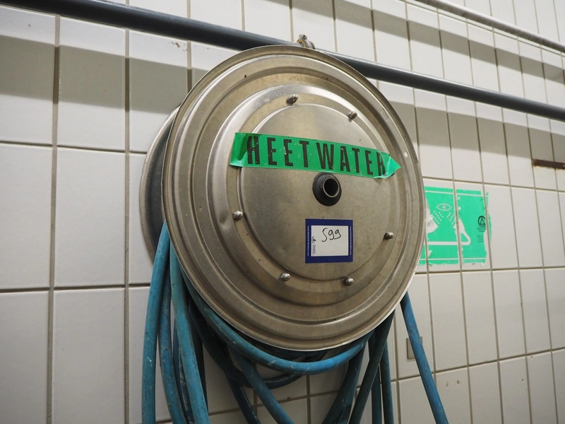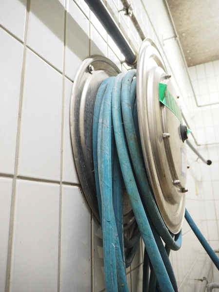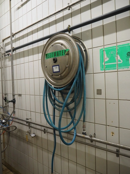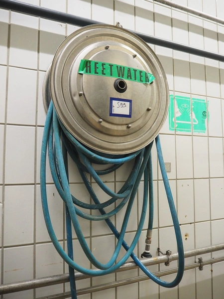 Hose reel with hose, dimensions: Ø 550 mm x 200 mm.