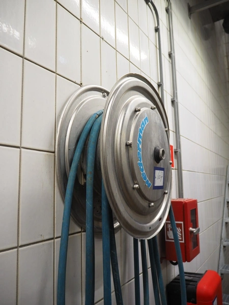 Nederman s/s hose reel with hose, dimensions: 550 mm x 200 mm x 550 mm.