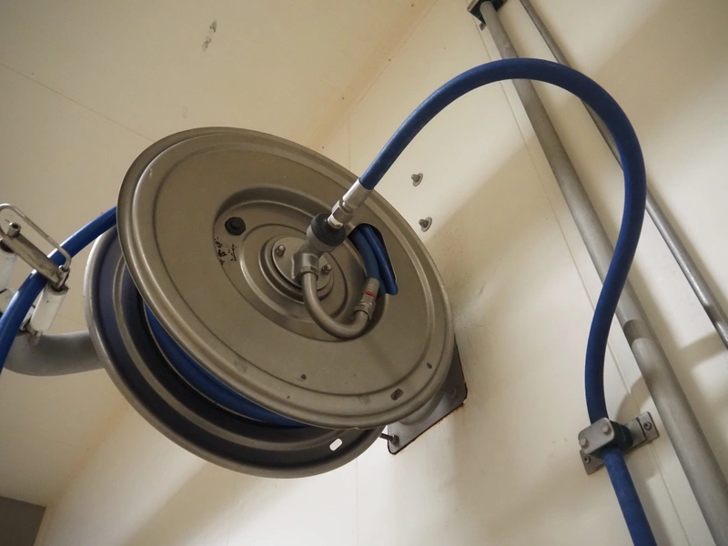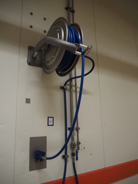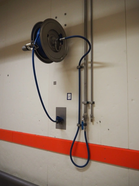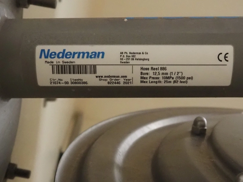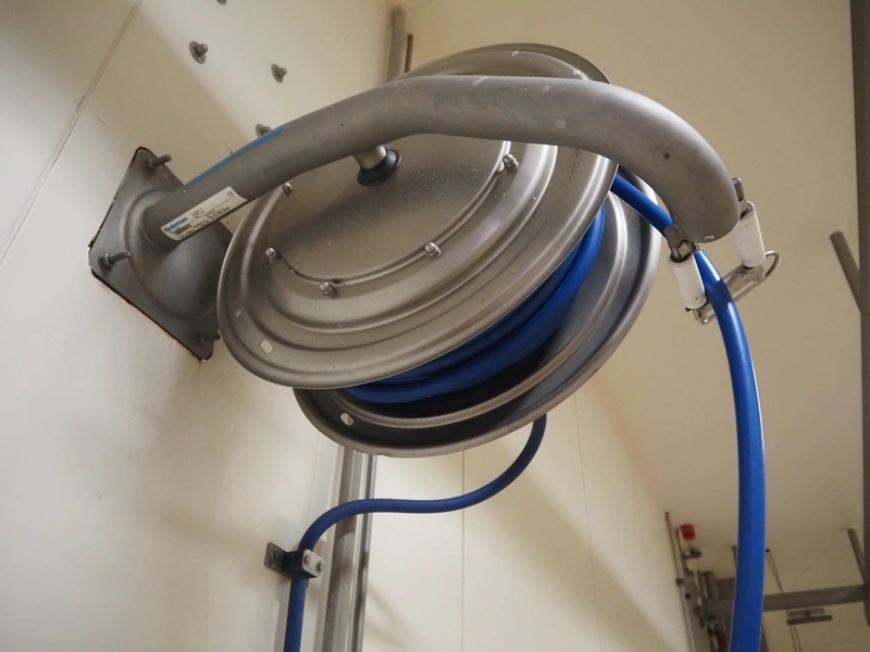 Nederman s/s hose reel, dimensions: 700 mm x 350 mm x 700 mm.