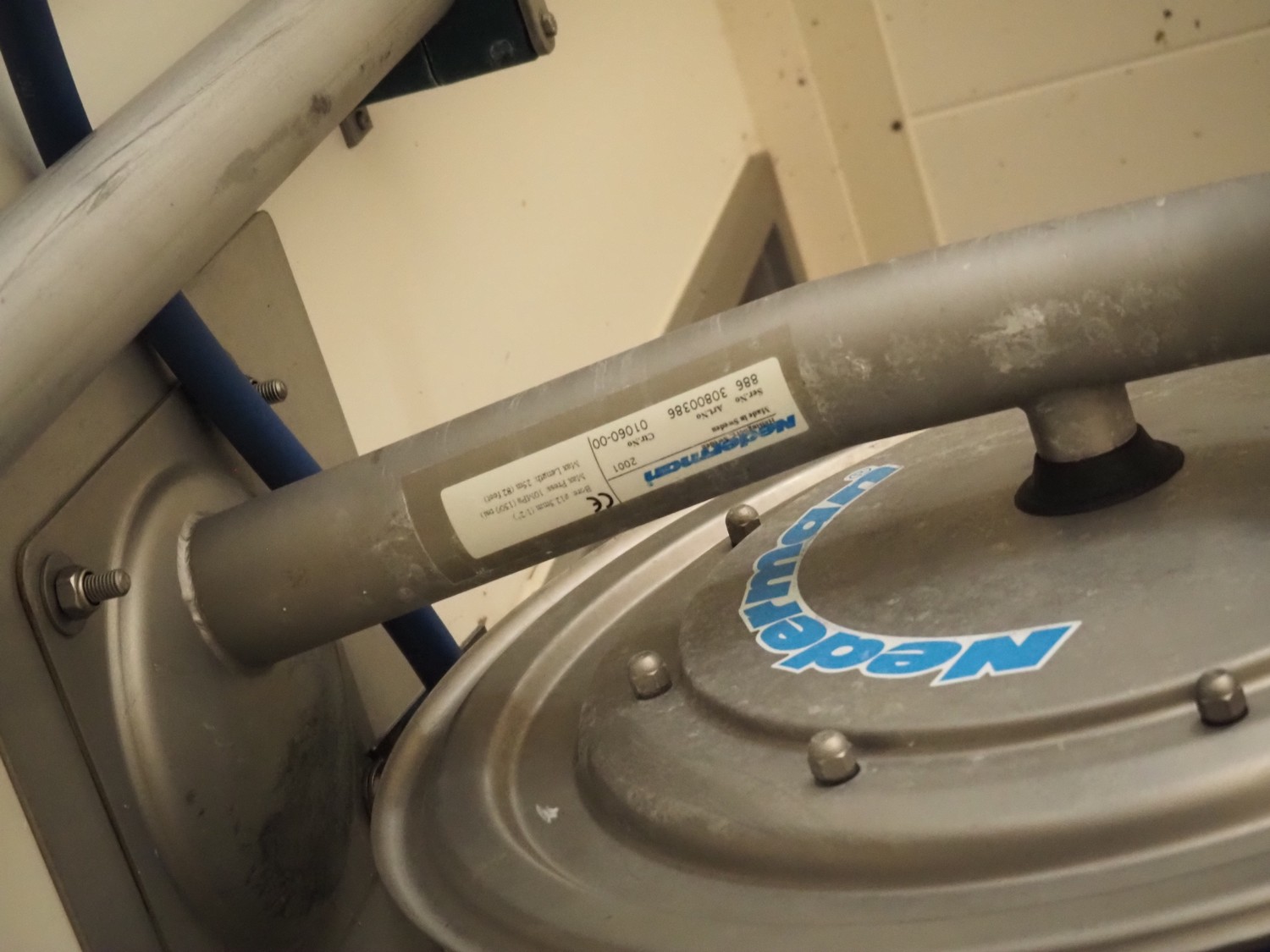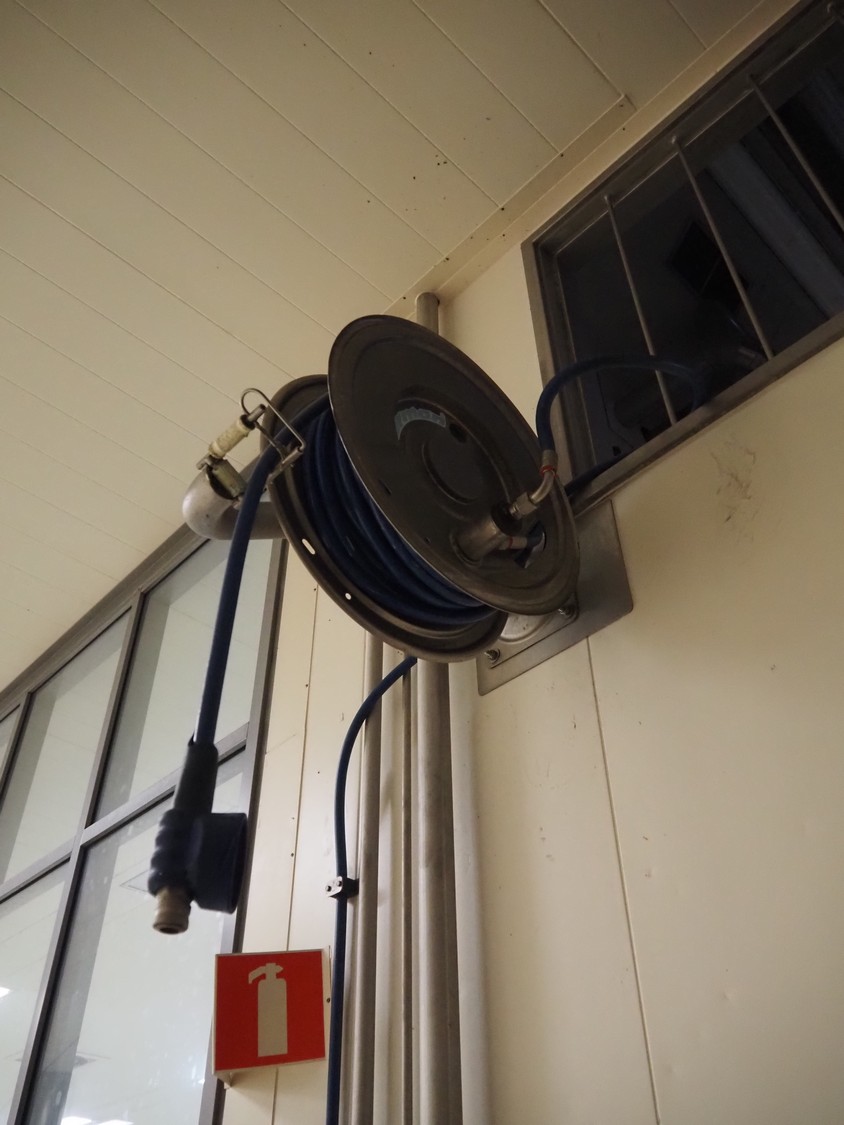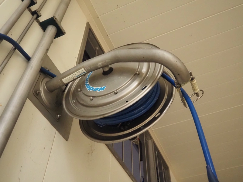 Nederman s/s hose reel, year of construction: 2001, bore: Ø 12.5 mm (1/2"), maximum pressure: 10 Mpa, maximum length: 25 meter, dimensions hose reel: 700 mm x 350 mm x 700 mm.