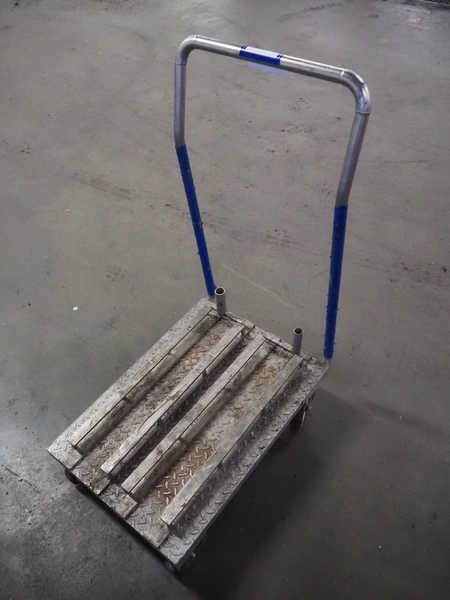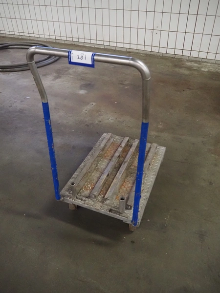 Steel trolley, dimensions: 500 mm x 700 mm x 1100 mm.