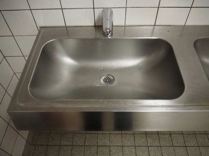 Franke s/s sink with 3 faucets, sensor control, dimensions: 2700 mm x 500 mm x 200 mm. Including 3 mirrors, 2 s/s soap dispensers and 2 s/s paper dispensers.