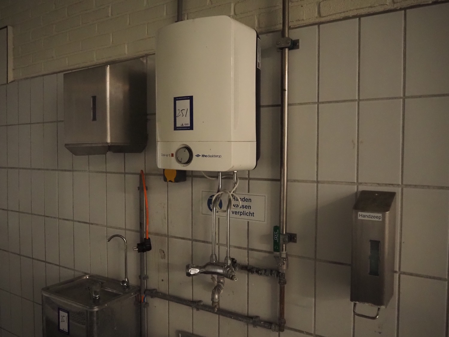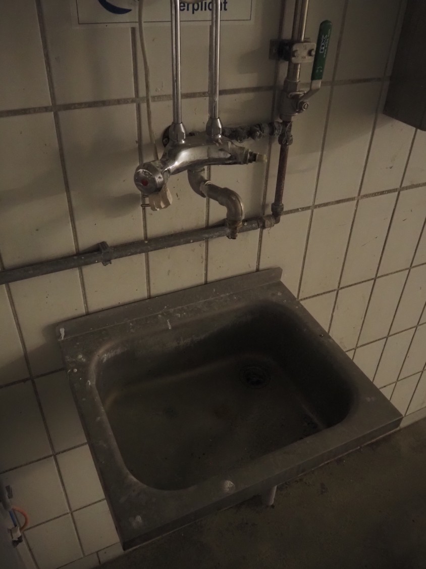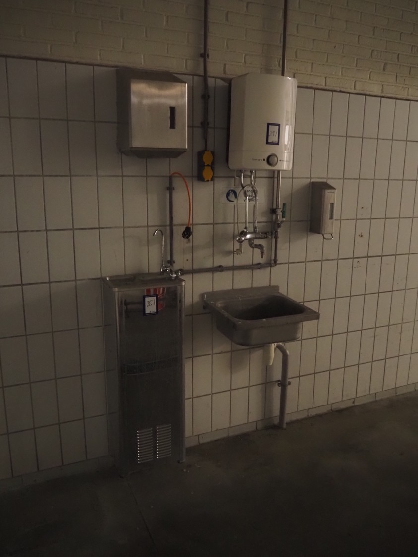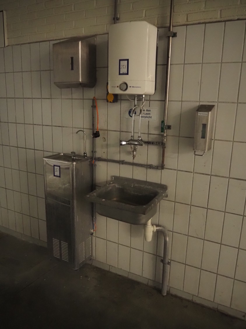 S/s sink, dimensions: 450 mm x 450 mm x 670 mm, s/s water fountain, dimensions: 360 mm x 270 mm x 1200 mm, s/s soap dispenser.