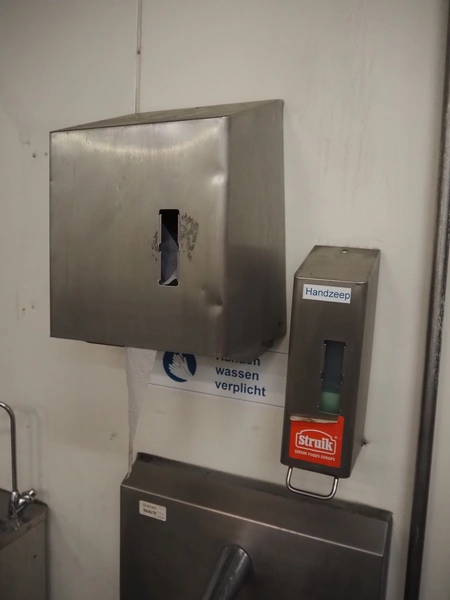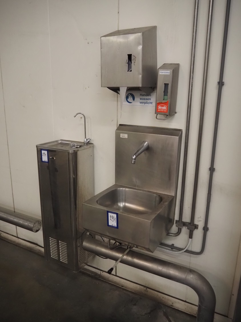 S/s sink, knee control, dimensions: 450 mm x 450 mm x 670 mm, s/s water fountain, dimensions: 360 mm x 270 mm x 1200 mm, s/s soap dispenser, s/s paper dispenser.