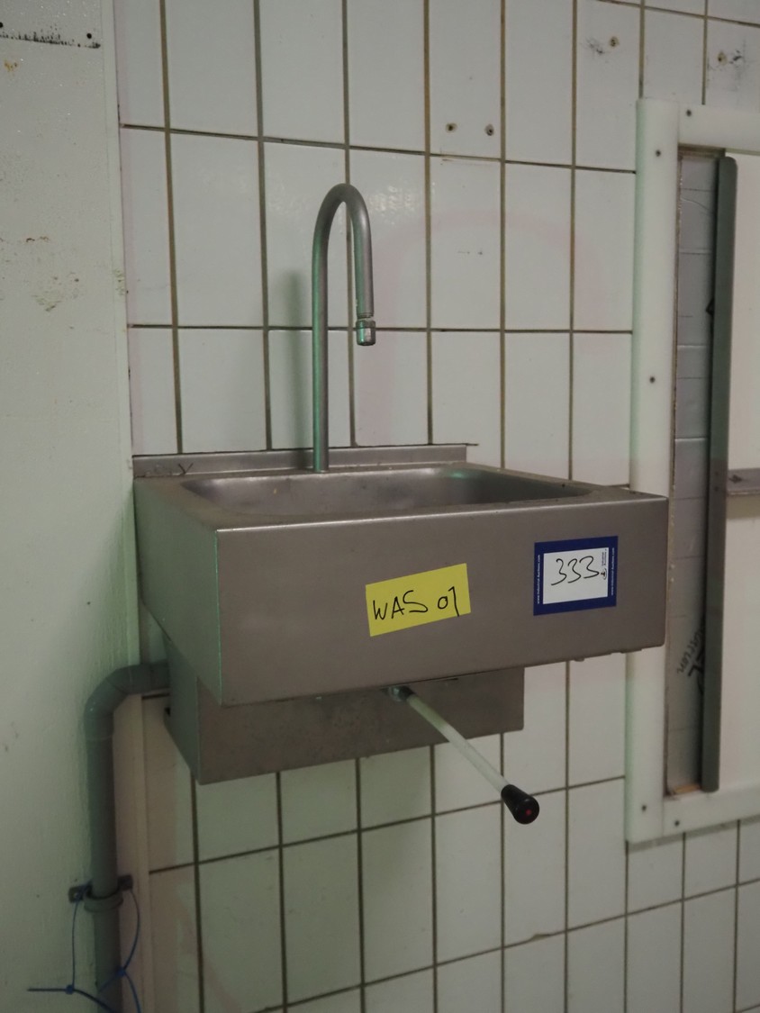 S/s sink, knee control, dimensions: 490 mm x 460 mm x 800 mm.