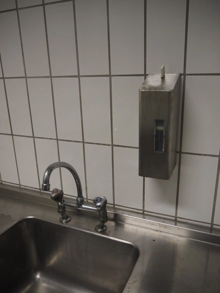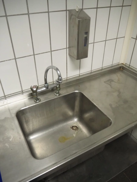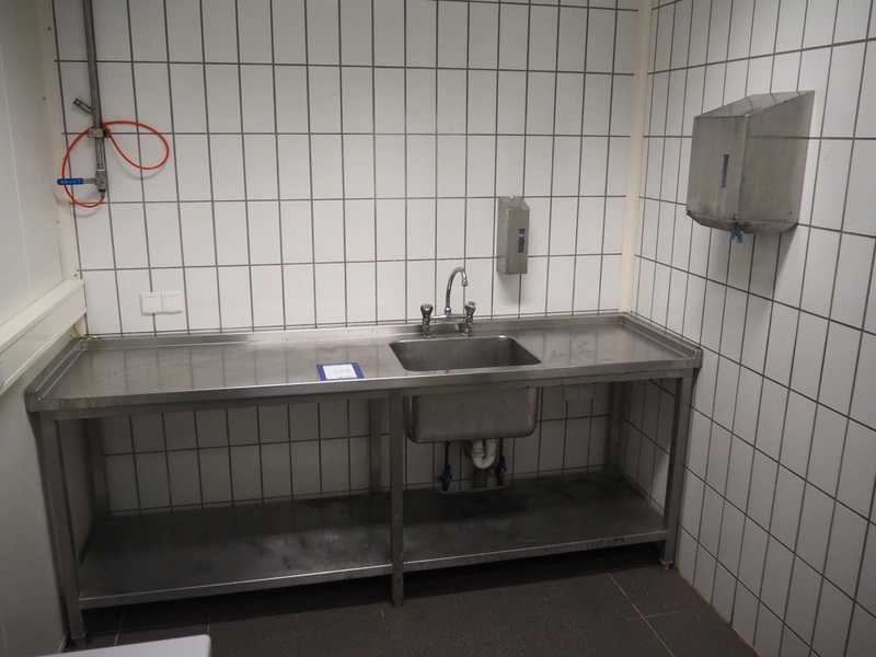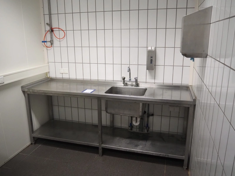 S/s table with sink, dimensions: 2250 mm x 610 mm x 900 mm.