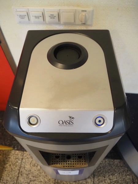 Oasis drink water dispenser, model: P1PVCDKY, serial number: 1728P29965, 220-240 V, 1 Ph, 50/60 Hz, 0.8 A, 100 W, 300 kPa, refrigerant: R134a/60 gram, dimensions: 320 mm x 380 mm x 1150 mm.