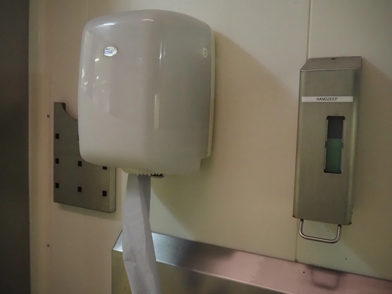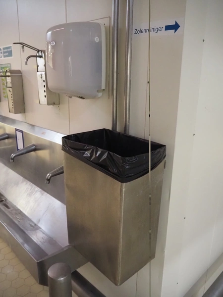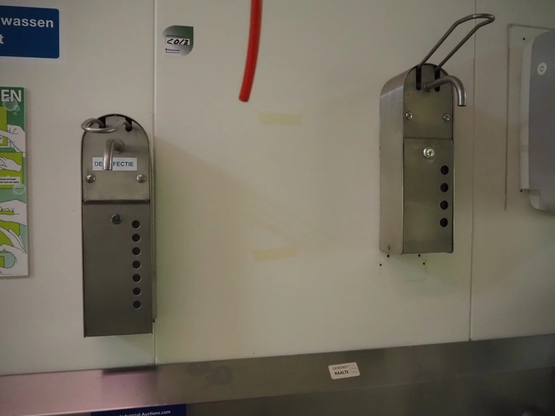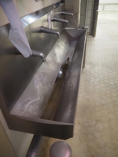 S/s sink, 4 faucets, sensor control, dimensions: 2050 mm x 450 mm x 650 mm. Including 3 s/s soap dispenser, 2 soap dispensers and a s/s waste bag holder.