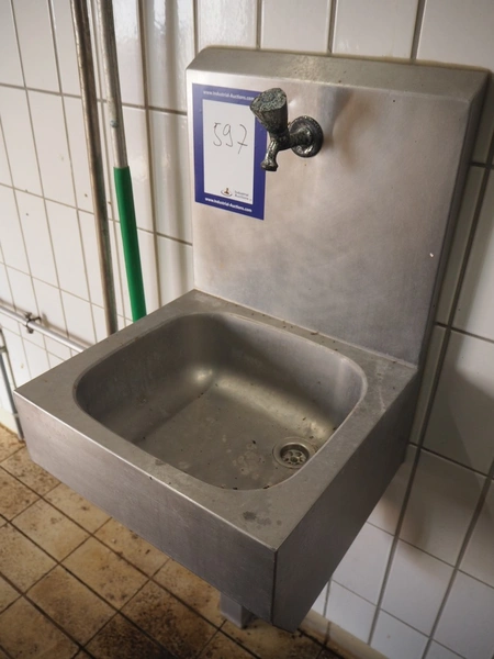 S/s sink with faucet, dimensions: 450 mm x 450 mm x 650 mm.