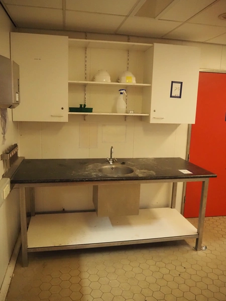 S/s sink, dimensions: 2100 mm x 900 mm x 940 mm, dimensions cabinet: 2170 mm x 340 mm x 920 mm.