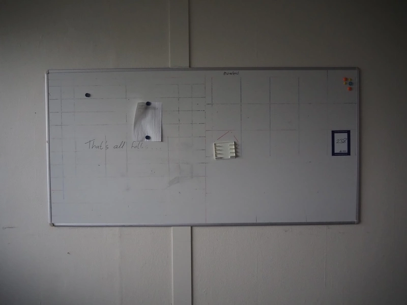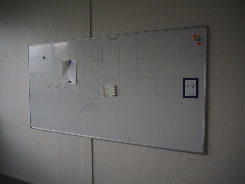 Whiteboard, dimensions: 2410 mm x 1210 mm x 10 mm.