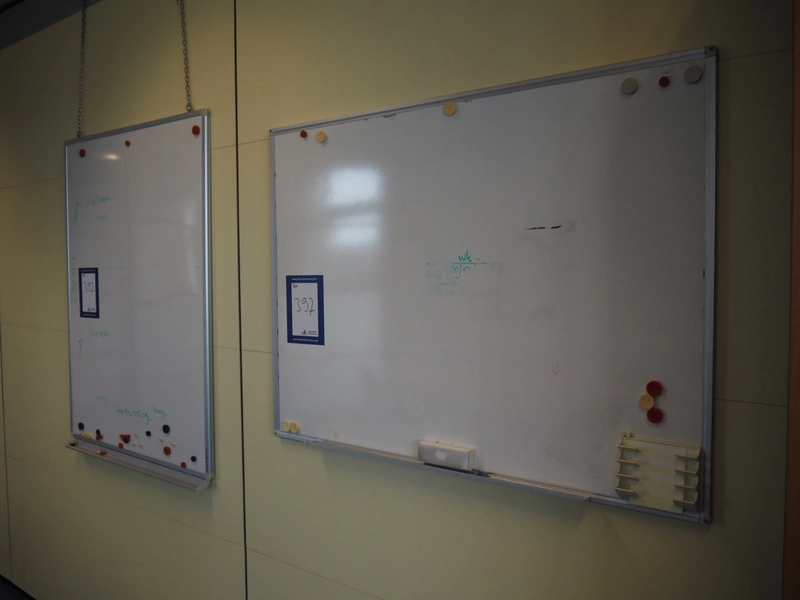 2 legamaster white boards, dimensions: (2x) 1200 mm x 900 mm x 10 mm.