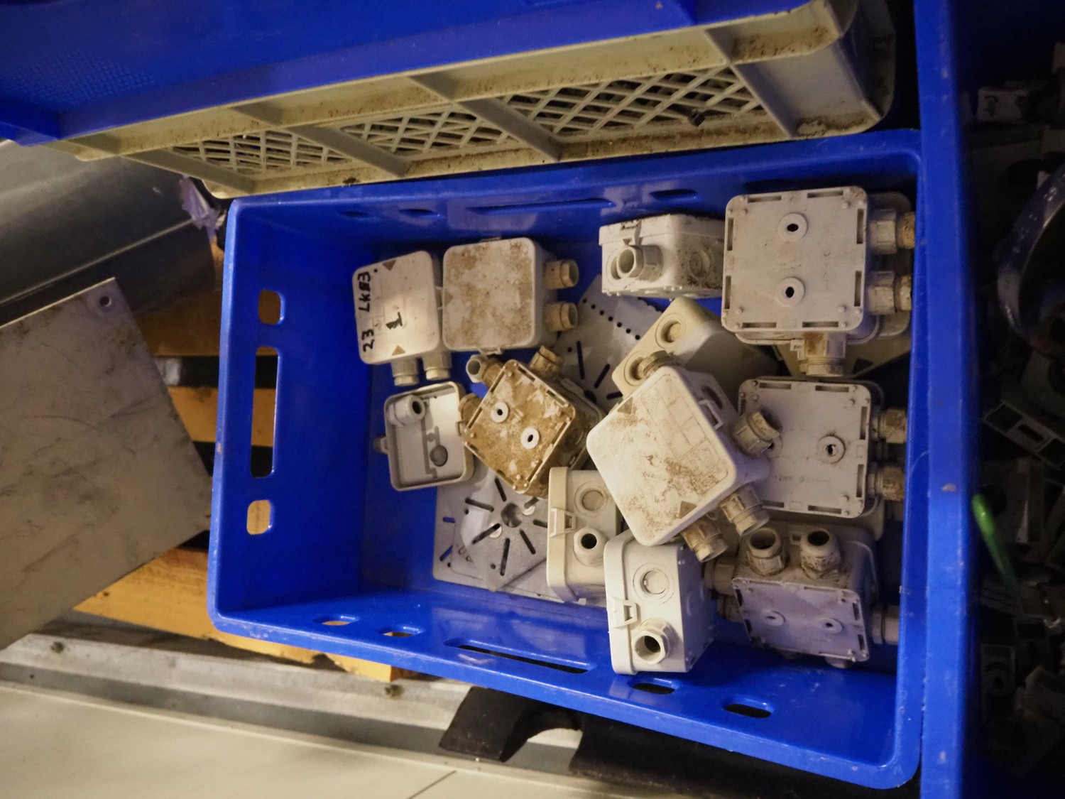 Pallet with various parts, among others: air fans, clock, plastic curtains, insect killer, etc, dimensions: (2x) 1200 mm x 800 mm x 800 mm.
