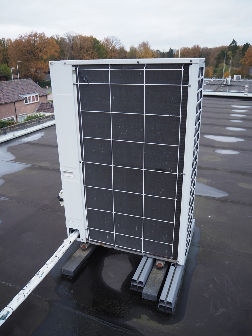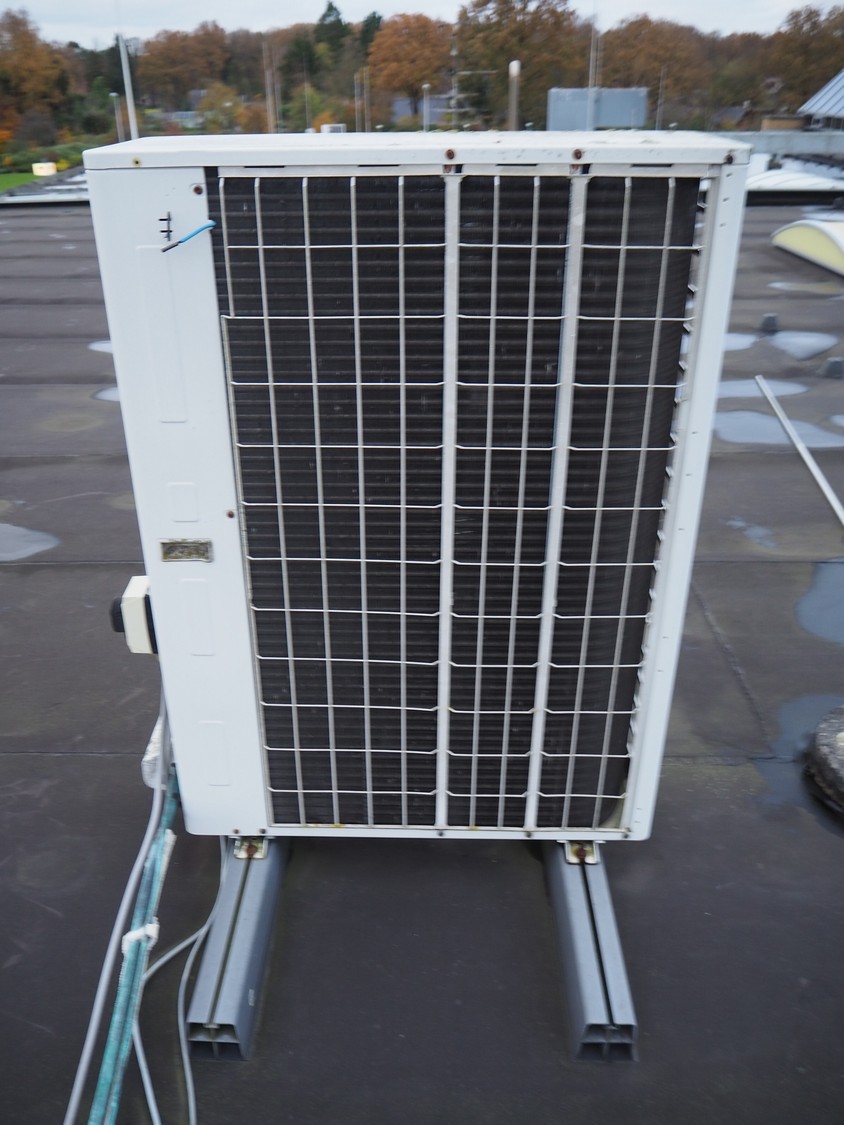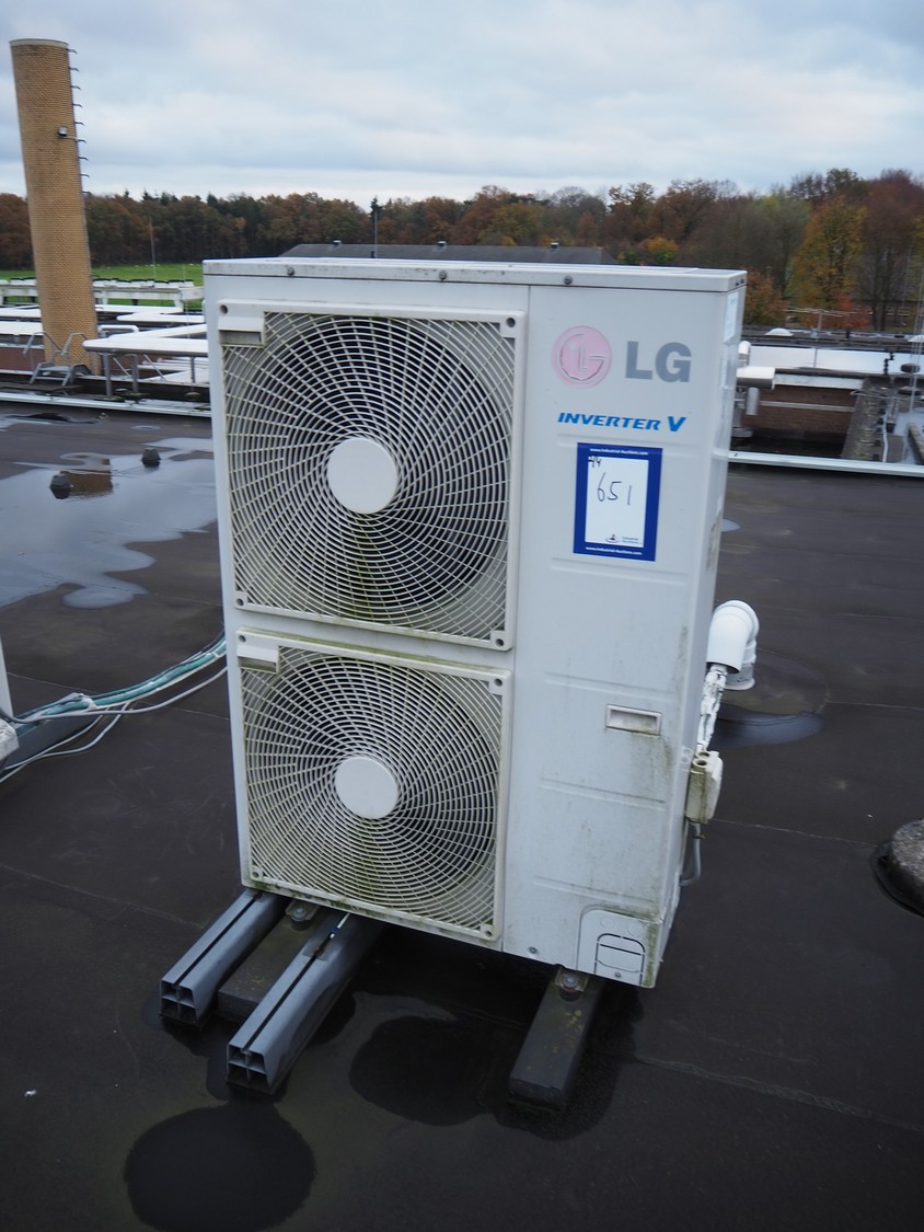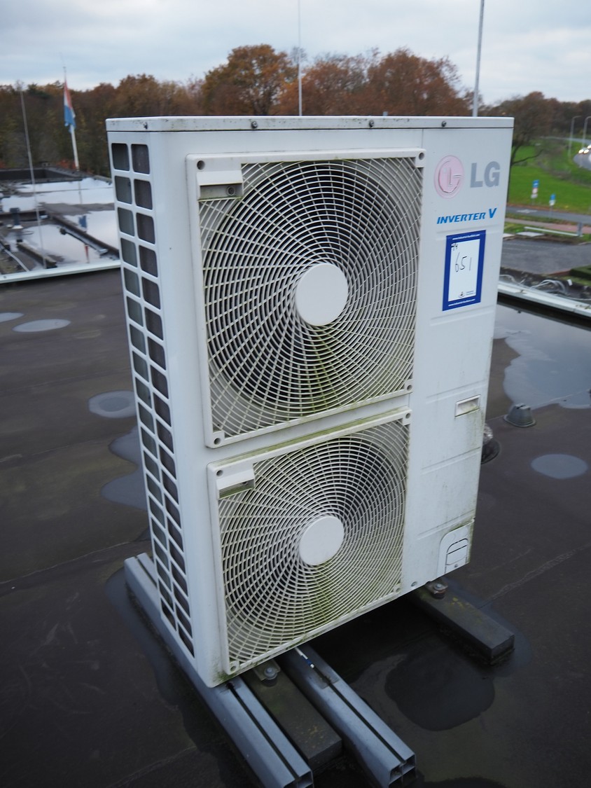 (2x ) LG outside air-conditioning unit, dimensions: 950 mm x 350 mm x 1390 mm and 870 mm x 350 mm x 1200 mm. Situated on the roof.