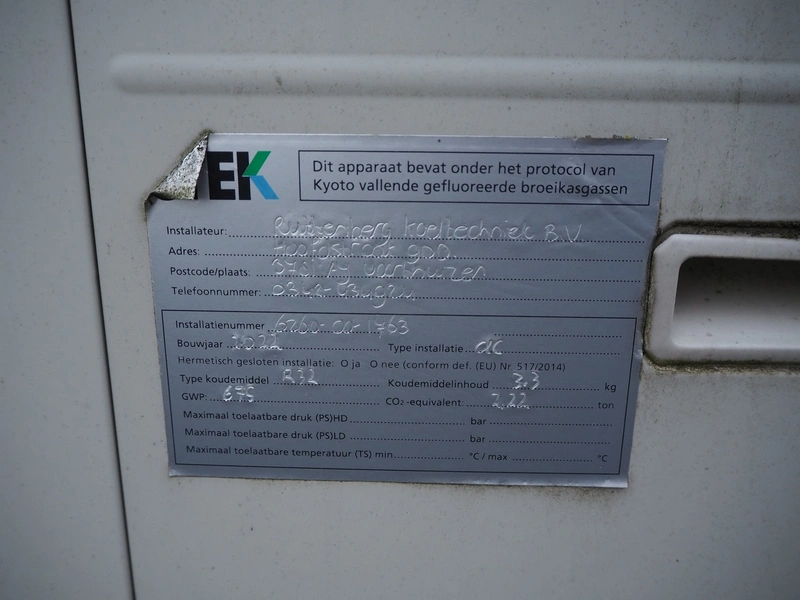 Mitsubishi outside air-conditioning unit, model: FDC140VSA-W, serial number: AG2301299RF, refrigerant: R32(675)/3.8 kg, dimensions: 960 mm x 390 mm x 860 mm. Situated on the roof.
