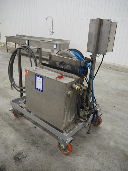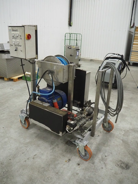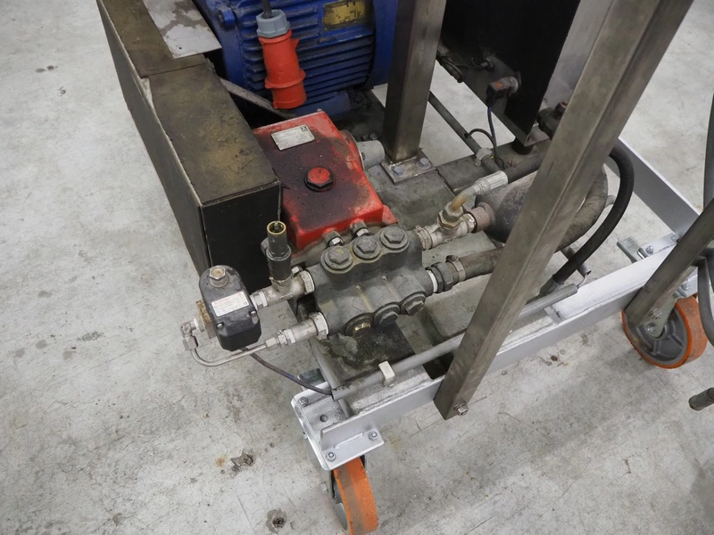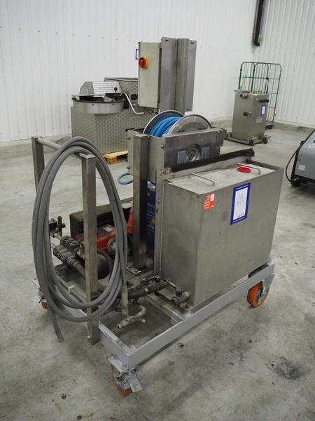 Mobile high pressure pump unit with Speck-Kolbenpumpenfabrik high pressure pump, type: P41/58-110, number: 186871, year of construction: 04/97, Q: 85.2 l/min P: 11.50 kW, Pmax: 110 bar, Tmax: 70 °C, dimensions: 1300 mm x 600 mm x 900 mm.