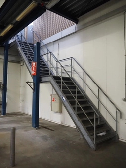 Steel stairs, hight to floor: 2750 mm, total dimensions: 3100 mm x 1500 mm x 3650 mm.0 bidsLot is closed -
