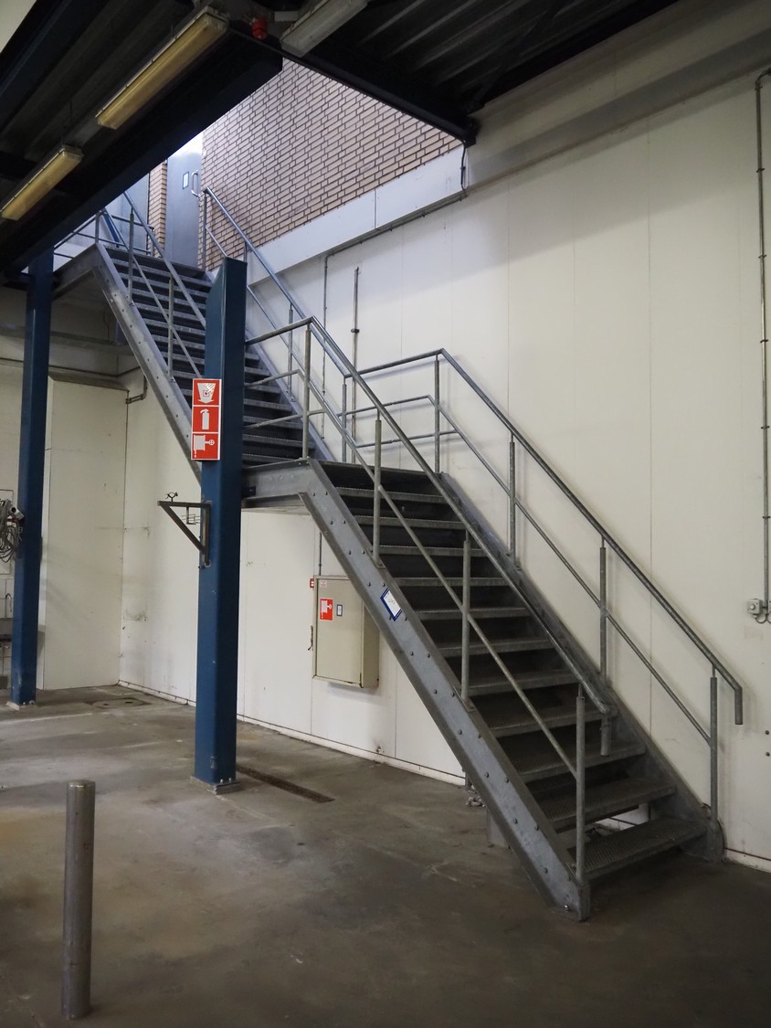 Steel stairs, hight to floor: 5000 mm, total dimensions: 1370 mm x 7400 mm x 6200 mm