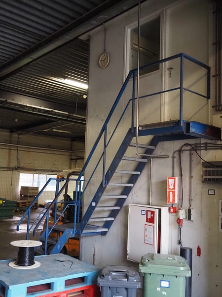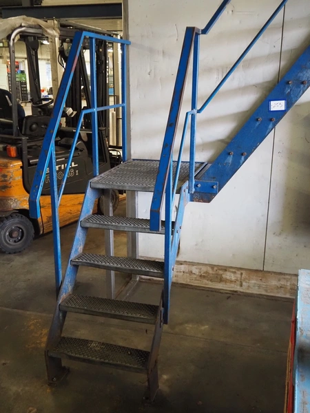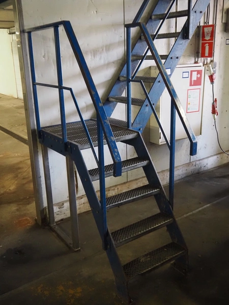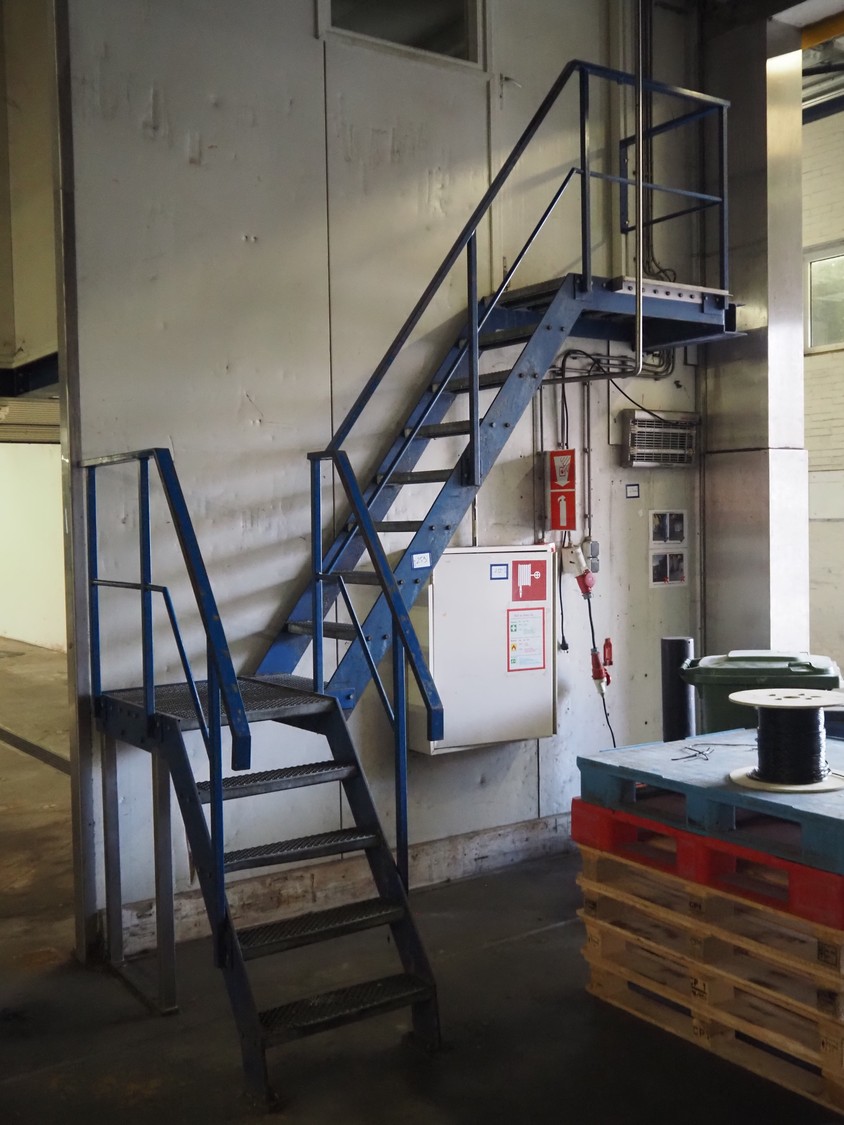 Steel stairs, hight to floor: 2750 mm, total dimensions: 3100 mm x 1500 mm x 3650 mm.
