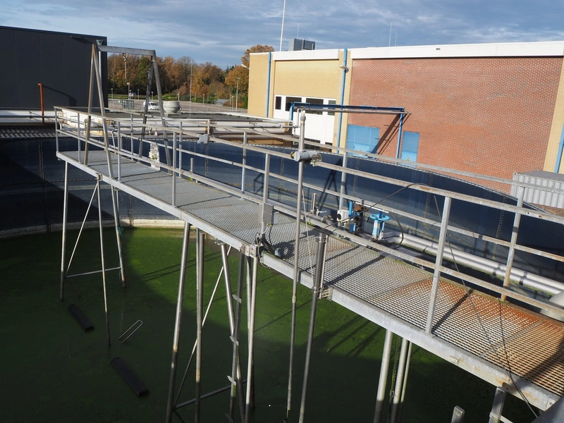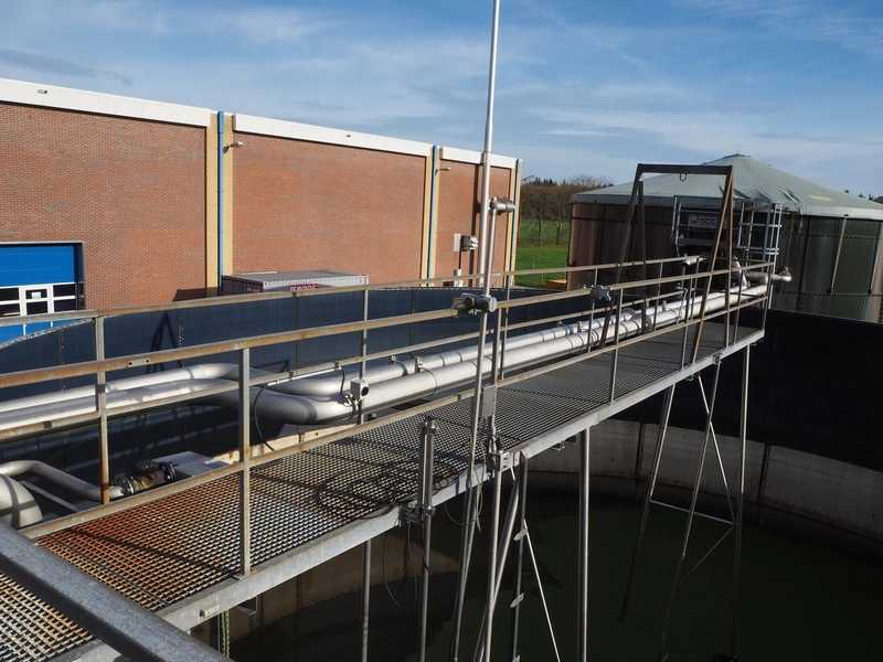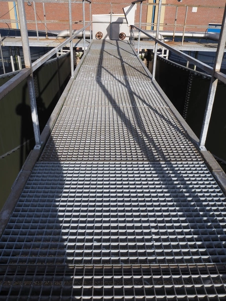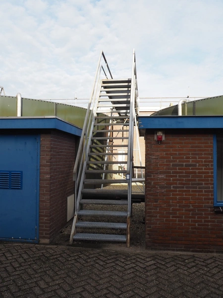 Steel platform with stairs, working height: 4050 mm, total dimensions: 21000 mm x 17000 mm x 4150 mm.