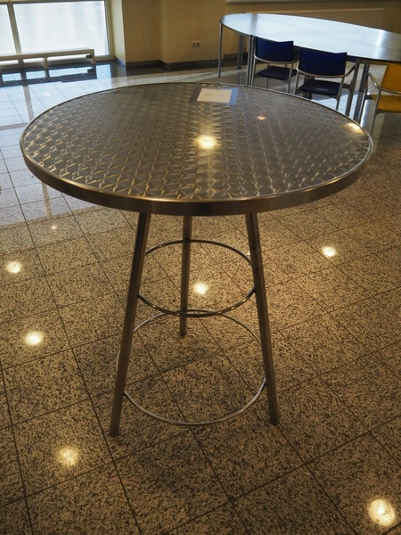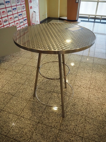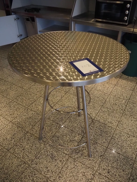S/s table, dimensions: Ø 900 mm x 1100 mm.