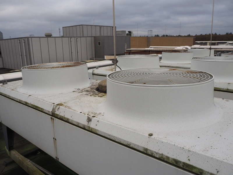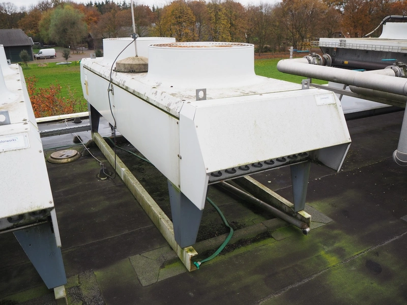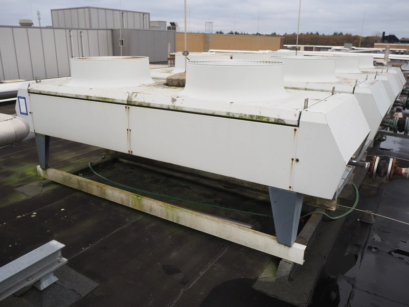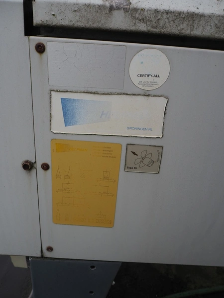 Helpman condenser, 2 fans, dimensions: 3700 mm x 1020 mm x 1400 mm. Situated on the roof. Can be picked-up at a later date as soon as the building will be demolished next year, a date for this is yet unknown.