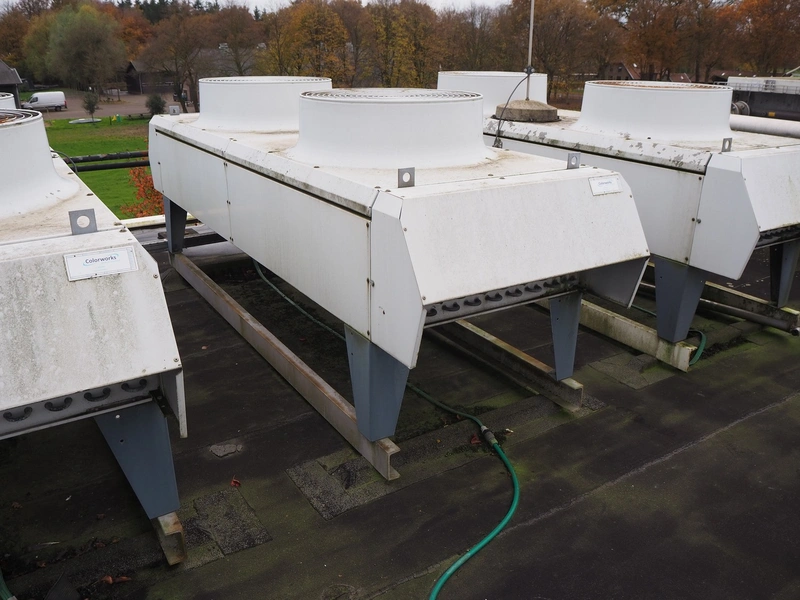 Helpman condenser, 2 fans, dimensions: 3700 mm x 1020 mm x 1400 mm. Situated on the roof. Can be picked-up at a later date as soon as the building will be demolished next year, a date for this is yet unknown.